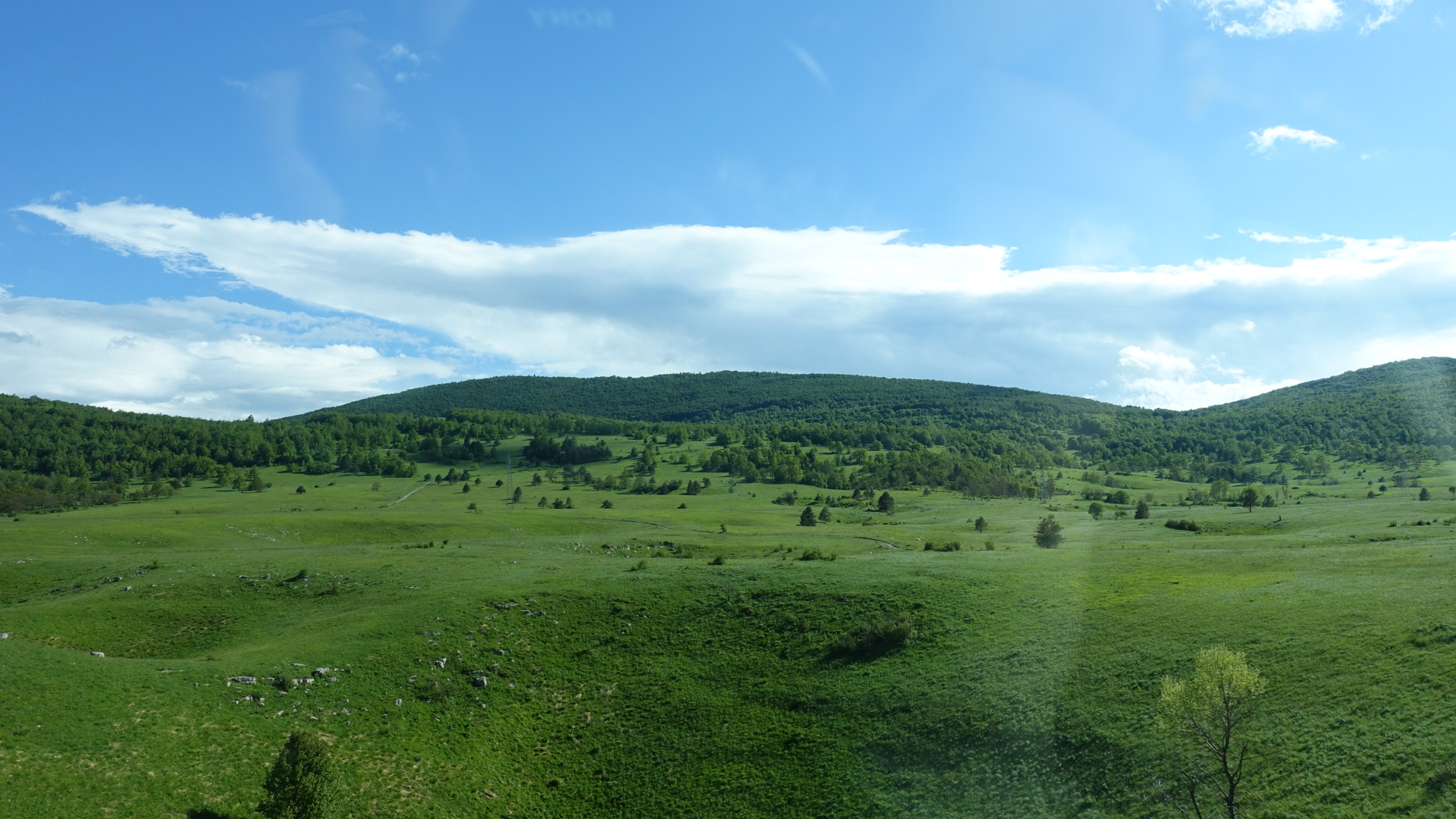 augewacht mit einem brutalen kopfwehkater auf weniger als drei stunden schlaf, ins auto gestiegen voller morivation und bis karlovac mehe oder weniger durchgehend knocked out. bis auf den besuch beim mci, wo bei unserer bestellung jedes einzelne stück falsch belegt war, pommes dabei waren die wir nicht bestellt hatten und ser mctoast aus zwei verkehrten burgerbuns bestanden hah die verkehrt aufeinander lagen, getrennt von einer geschmolzenen käseschicht. hat gut erheitert. dann ab karlovac im recherchier und gegemdschaumodus gewesen. schöne gegenden, anfangs etwa die nahe bei den plotvicer seen rund um slonji, in der wir kurz halt gemacht haben um die mühlen und wasserfälle anzusehen. weiter gings durch grüne wälder mit kalkigen einschlägen (dolinen, recht tiefe schluchten) und anschließend ein breiter werdendes tal das über die grenze kroatien - bosnien nach bihac führt. zur rechten im begrenzenden bergmassiv konnte man die ehemalige luftwaffenbasis zeljava sehen, die größte im jugoslawischen staat, mit unterirdischen hangars und bunkern, die extem weitläufig, aber teils vermint sind. ein besuch wird wohl fürs nächste mal aufgespart werden müssen, es klingt aber wahnsinnig spannend. in bihac die stadt besichtigt, eigentlich ein sehr netter ort mit lebenswert wirkendem stadtkern, viel natur dank der surchfließenden una, die dort auch wahnsinnig schön blau und grün ist, und spannende geschichte mit den drei belagerungen, der festung, und der früher gotischen kirche die eine moschee wurde. kaffee getrunken in einem cafe voll mit jungen locals, generell hat alles sehr lebendig gewirkt. auch wenn der kellener eher schläfrig war, zumindest uns gegenüber. dann burek gekauft und weiter richtung strbaki buk, auf offroad strecke die man sich allerdings erst für 6 euro pp erkaufen muss. und auch entgegen der karten nur one way, da ein teil gerade asphaltiert wird, dort aber wieder herrliche grüne natur, und schöne wasserfälle, direkt an der grenze zu kroatien. wetter dauerhafte abwechslung aus regen, der allerdings nie dramatisch war, und sonne, aber insgesamt eine gute kulisse für den tag. dann gings nach einem kleinen spaziergang am wasser wieder hinaus auf die strasse richtung jajce, wo wir wirklich herrliche, weite, grüne landschaften mit kaum besiedelung gefunden haben, die direkt lust auf zum einen offroad abenteuer, und zum anderen entspanntes zelten oder ähnliches machten.
